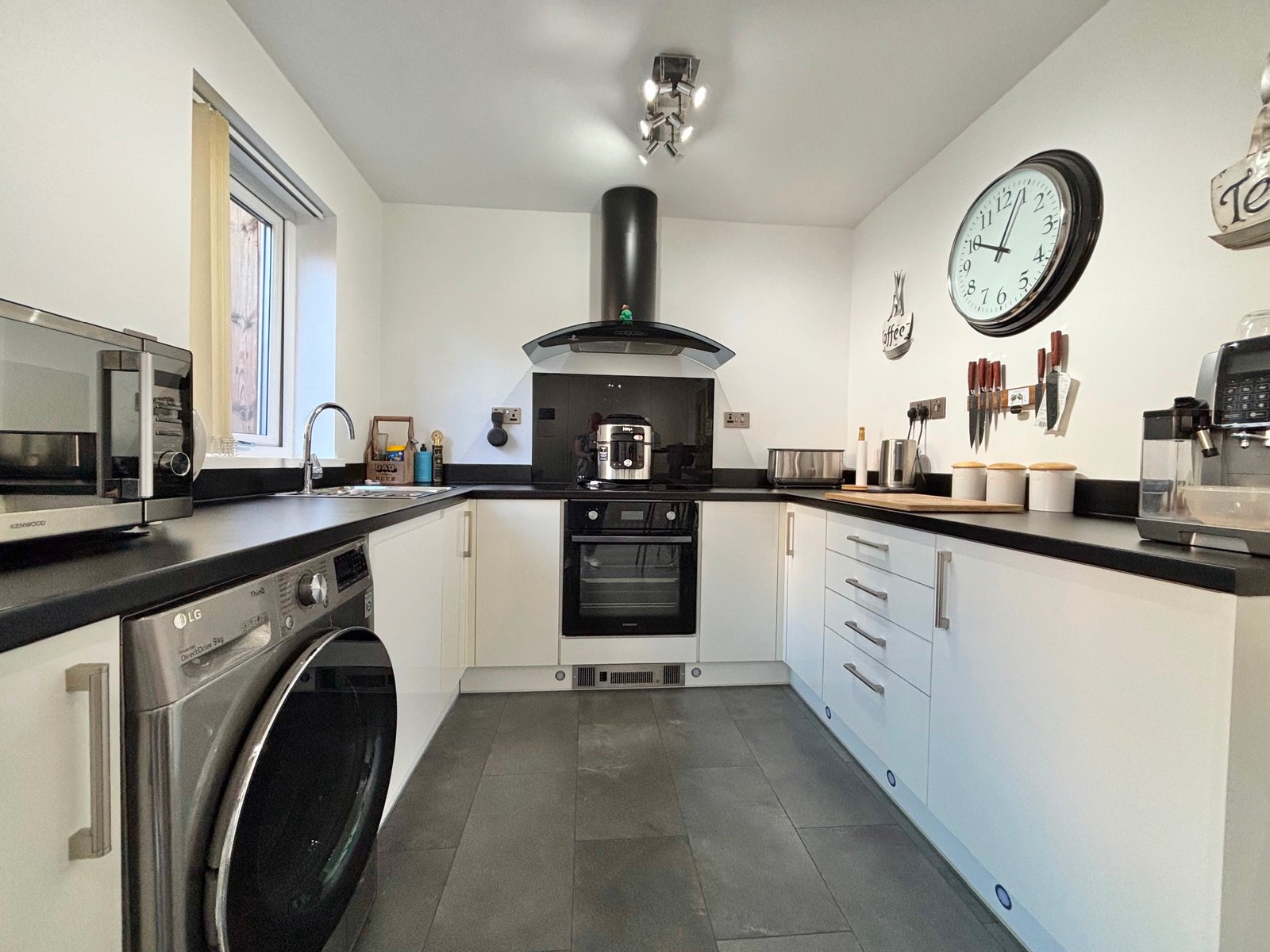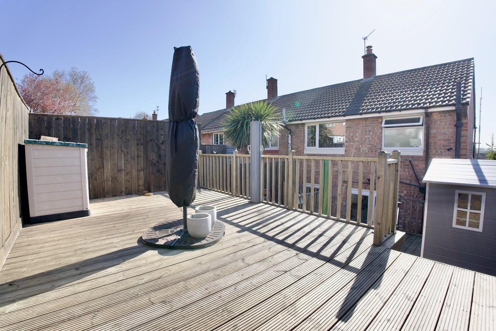 The kitchen is well-proportioned and thoughtfully designed, offering ample storage along with integrated appliances including a fridge freezer and dishwasher. Patio doors lead seamlessly out to a generous split-level rear garden, complete with decking-ideal for relaxing in the sunshine or entertaining guests.