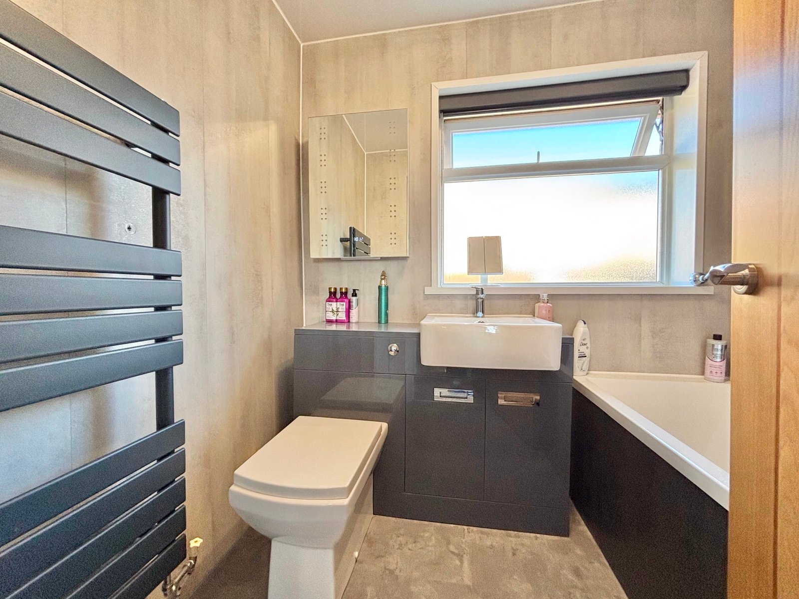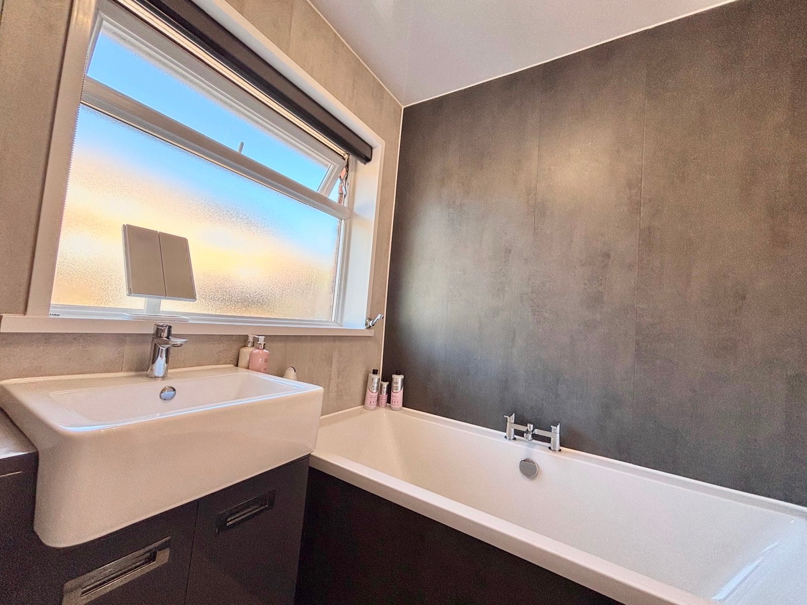 Upstairs, the property continues to impress with a modern family bathroom featuring a stylish vanity unit, alongside two well-sized double bedrooms.