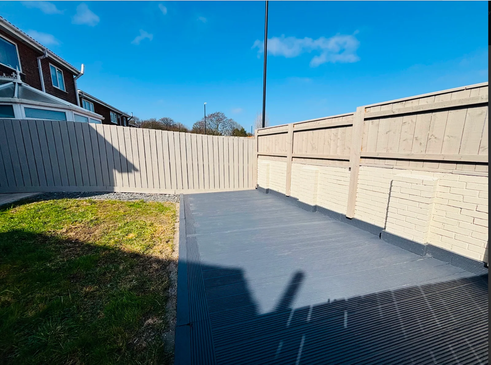 Immaculate throughout and show-home ready, the property features a stylish living room, modern kitchen, extended dining area, two good-sized bedrooms, and a sleek bathroom. Outside boasts a generous rear garden with patio, decking and lawn, plus a good-sized garage.