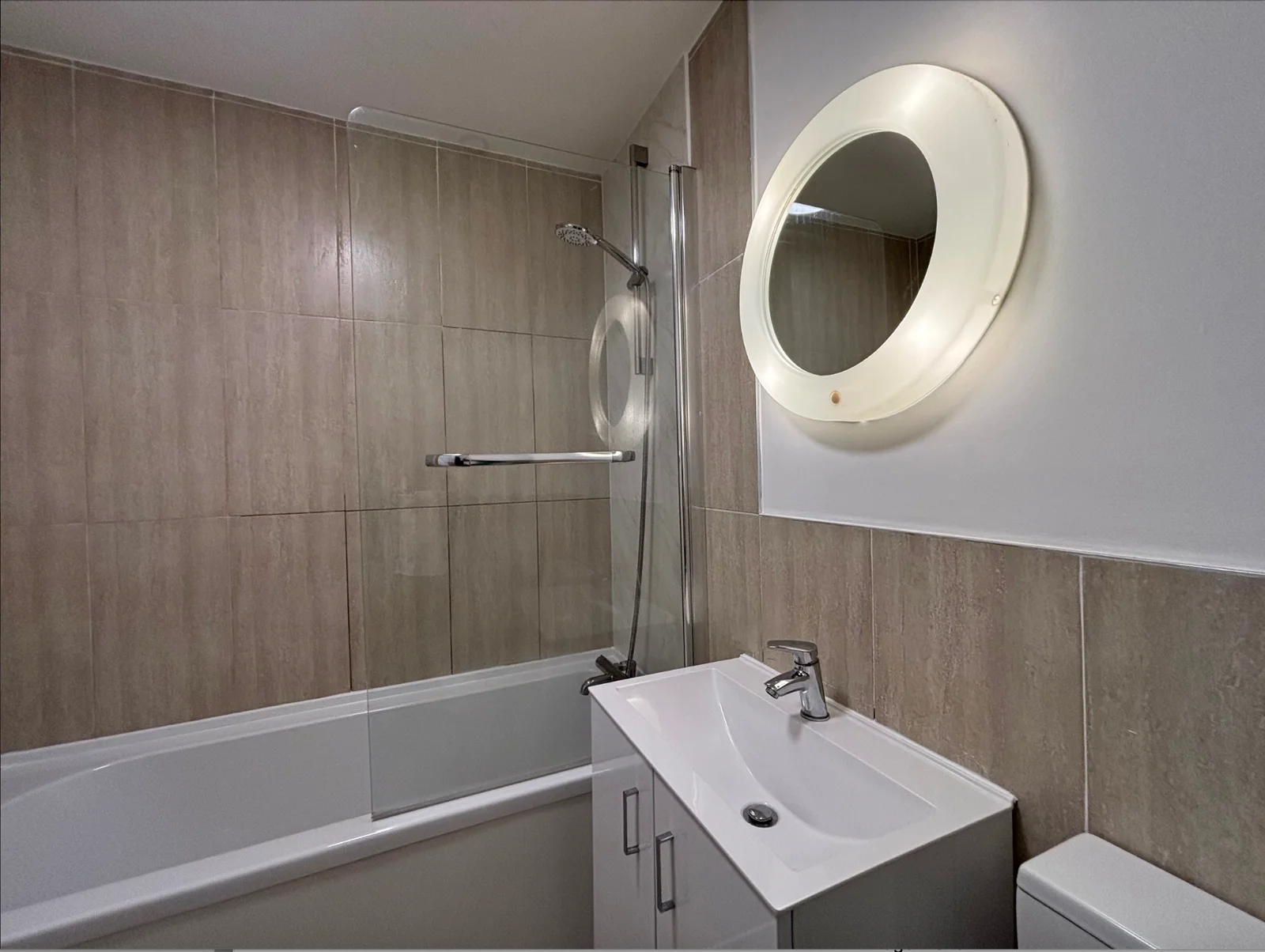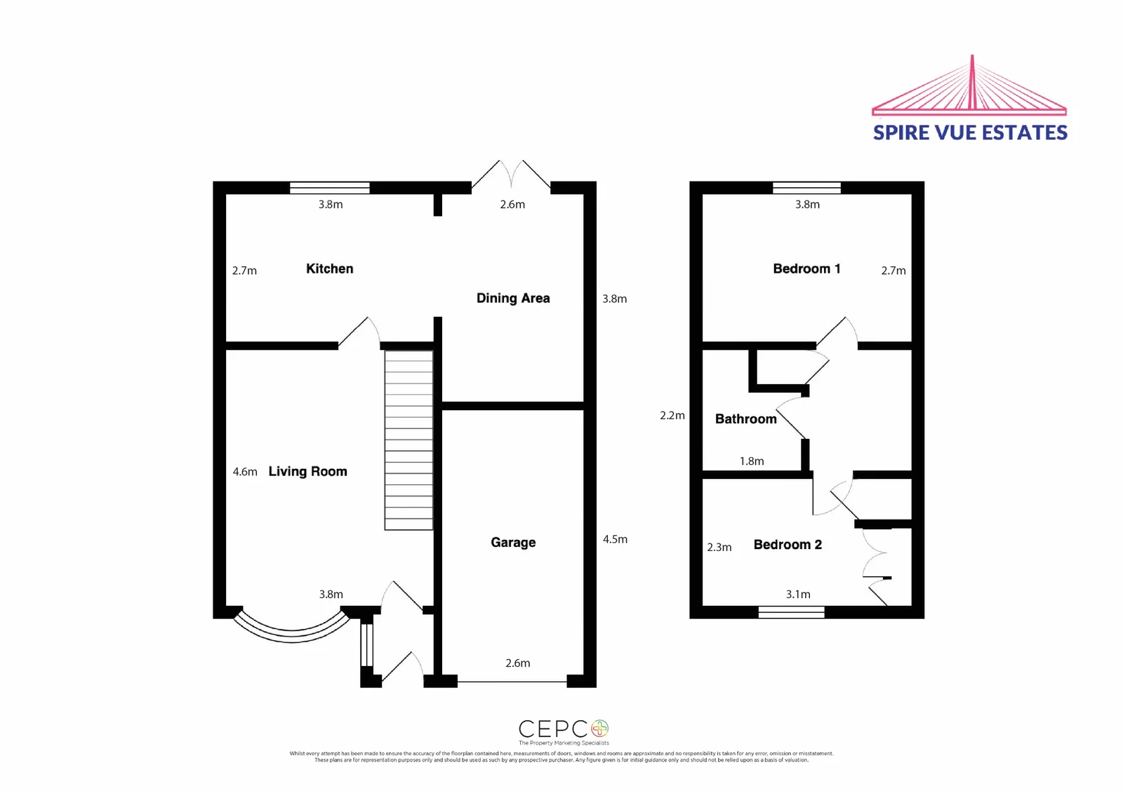 Upstairs, there are two well-proportioned bedrooms, with the main bedroom benefitting from fitted wardrobes. The family bathroom is sleek and modern, featuring an over bath shower.