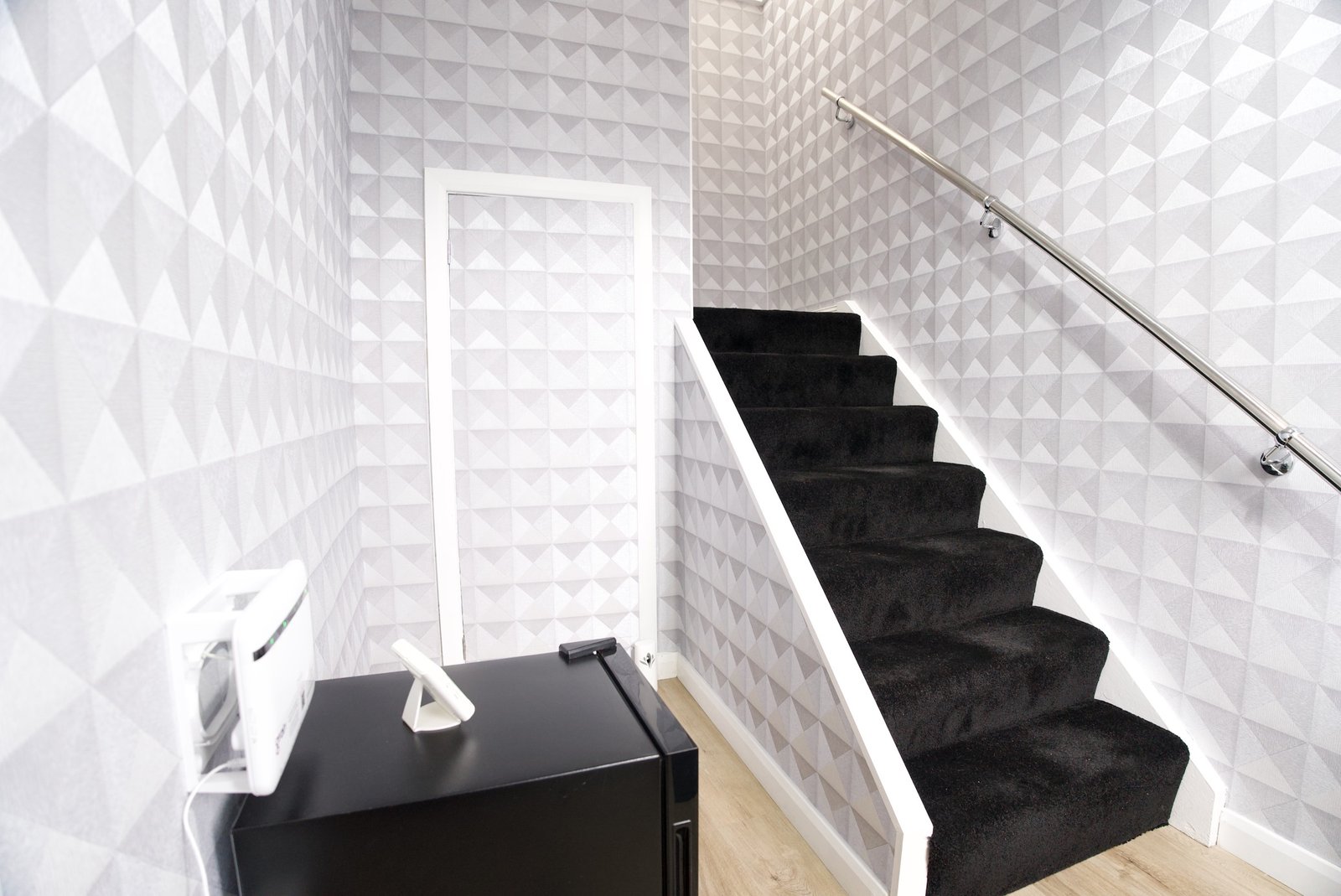 The ground floor boasts a spacious open-plan living area, enhanced by luxurious underfloor heating, creating a warm and contemporary space perfect for relaxing or entertaining. A brand-new fitted kitchen provides a sleek and functional design, complemented by a separate downstairs utility room and convenient W/C.