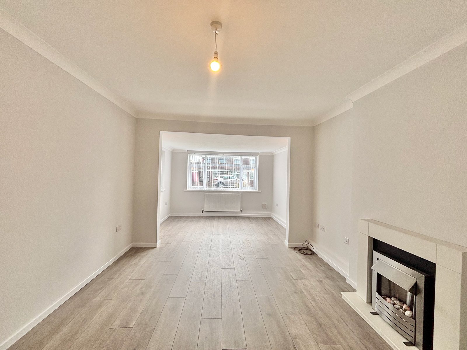 The property welcomes you through an entrance hallway leading to a spacious living room, which benefits from an extension to the front, creating a bright and generous living space ideal for relaxing or entertaining.