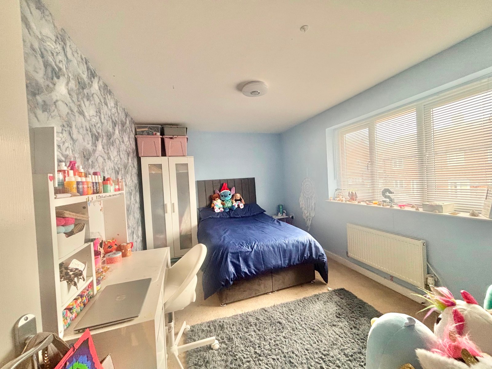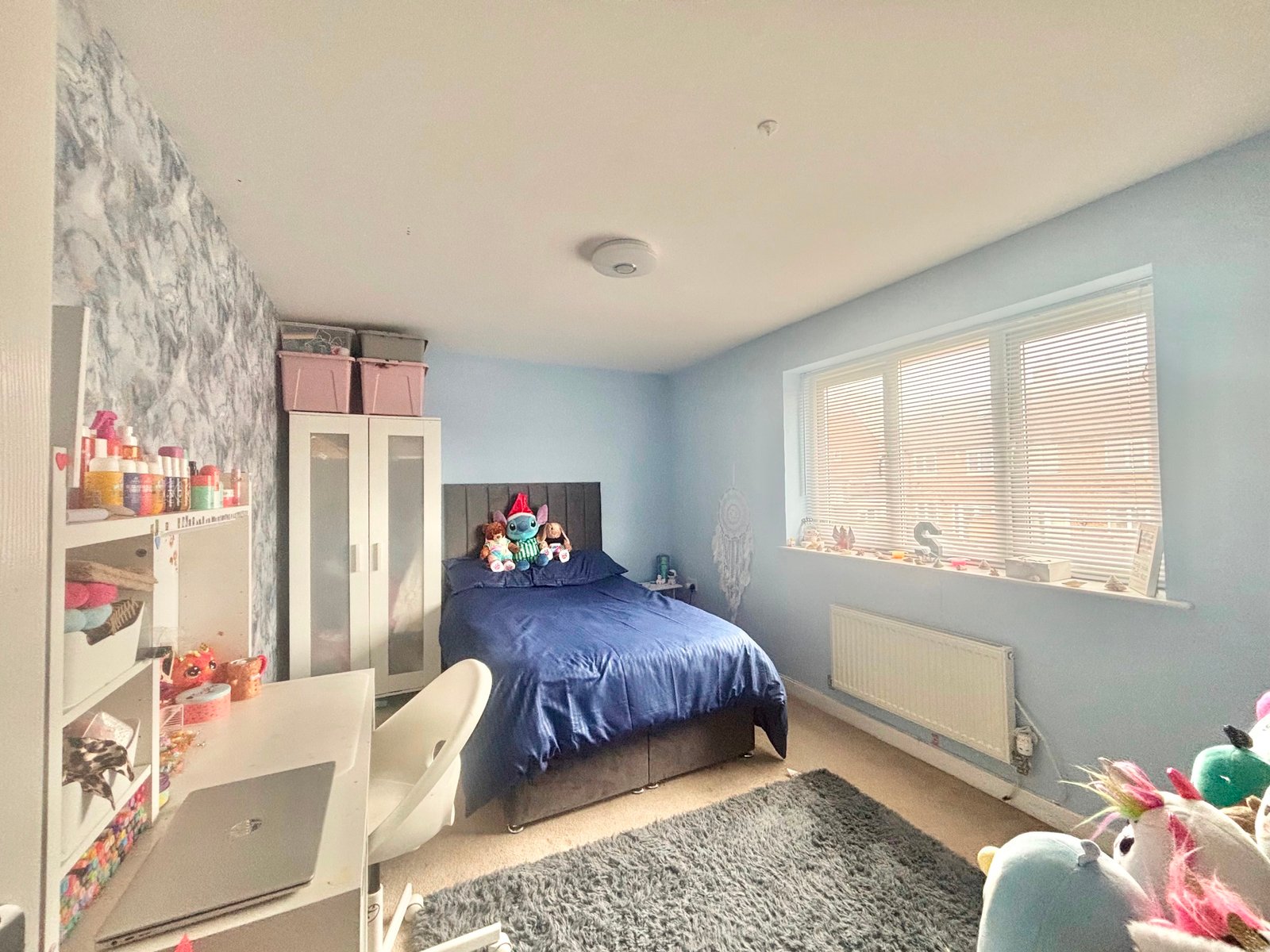 The first floor presents an elegant family living room with a Juliet balcony, creating a light-filled and inviting space to relax. The principal bedroom is also located on this level, complete with a sleek en-suite bathroom featuring a walk-in shower.